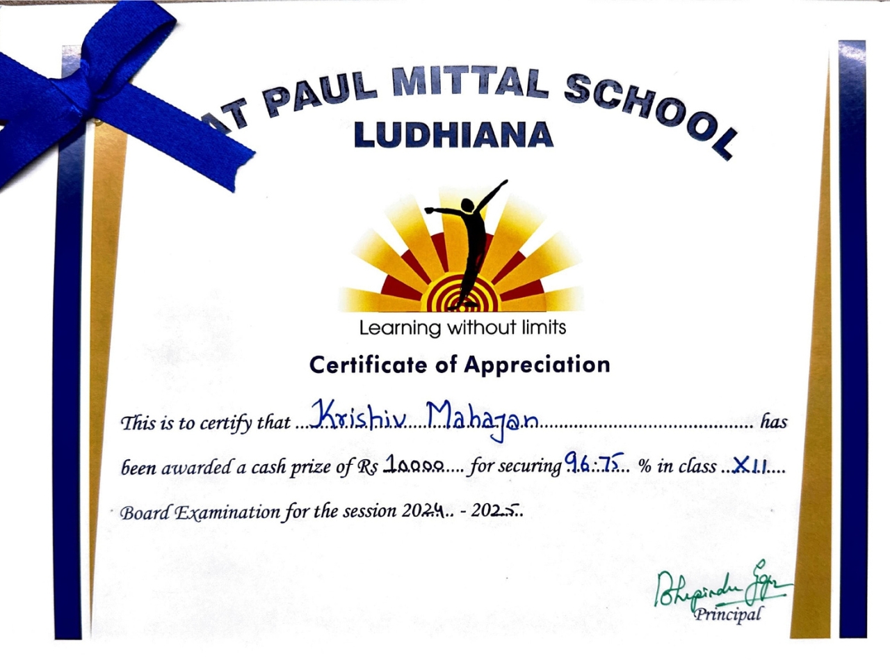 I was awarded an appreciation letter by Shri Sanjeev Arora, Cabinet Minister of Industry & Commerce, Investment Promotion, Power, and NRI Affairs, Government of Punjab, for my exceptional achievements in health technology, artificial intelligence, and social service.